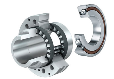 軸向角接觸球軸承有于單列,雙列或三列即用即裝單元。這些軸承是自保持的,包含有尺寸穩定的厚壁外圈,滾珠和保持架組件,以及整體或剖分內圈。在幾個系列產品中,外圈有將軸承安裝于相鄰結構的法蘭通孔。 軸圈彼此匹配,在用帶防松的精密鎖緊螺母鎖緊軸圈之后,就可以達到指定預負荷。